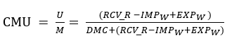 The CMU is defined as the ratio of the circular use of materials (U) to an indicator of the overall material use (M). It can also be defined as the amount of waste recycled in domestic recovery plants, minus imported waste destined for recovery, plus exported waste destined for recovery abroad.