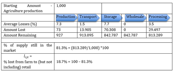 lijt is the loss percentage (estimated or observed) of commodity j in country i year t