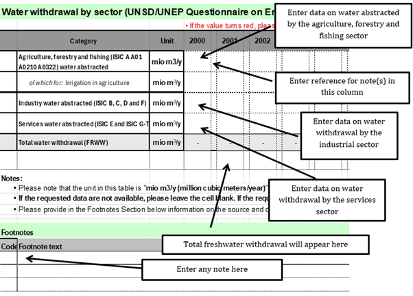 Figure 2. 59 Entering data on water withdrawal by sector (agriculture, services and industries) and calculation of total freshwater withdrawal