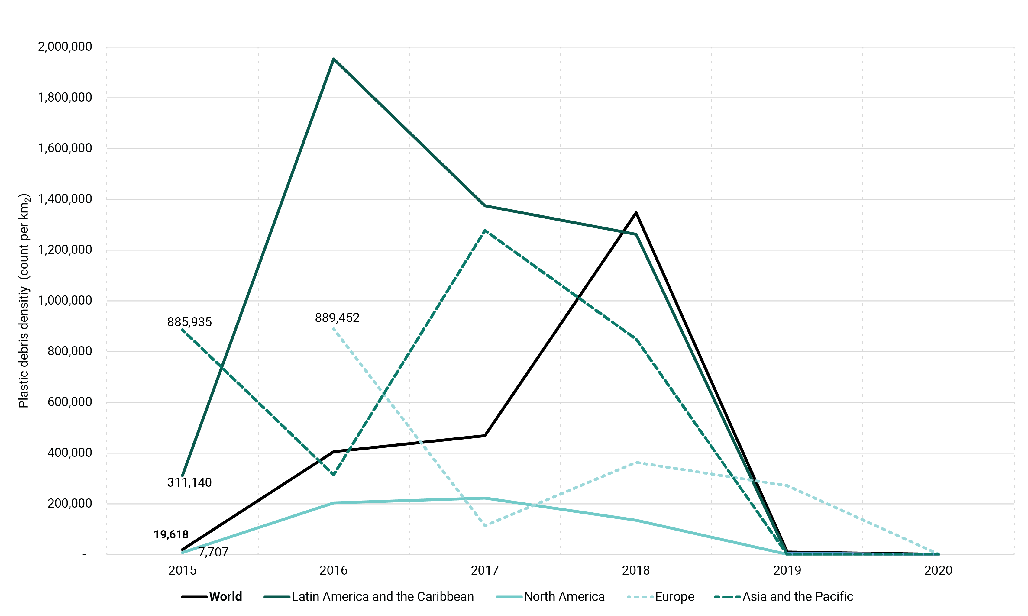 Data availability and reporting is a serious issue; nearly one third (18/64) of the indicators reviewed do not have sufficient data to understand if the issue is improving or not. For these indicators, there is either no data, limited data that does not allow for regional or global aggregation, or data from only one year which does not allow for trend analysis over time. For example, of the 15 indicators used to assess the response to land and soil pollution issues,53% of them do not have sufficient data to provide an assessment of the trend for the data over time. More specifically, SDG data on plastic debris density in marine and coastal environments are scarce, indicating a gap in the measurement capacity. Data on average marine acidity are scarce and regional aggregations are only available for North America, and data on the percentage of countries using ecosystem based approaches to managing marine areas are limited. This is also the case for data on the water quality for groundwater bodies, which is very limited as compared to water quality for surface water. Additionally, there is a lack of gender disaggregated data, which prevents analysis of the gender differentiated impacts of pollution.