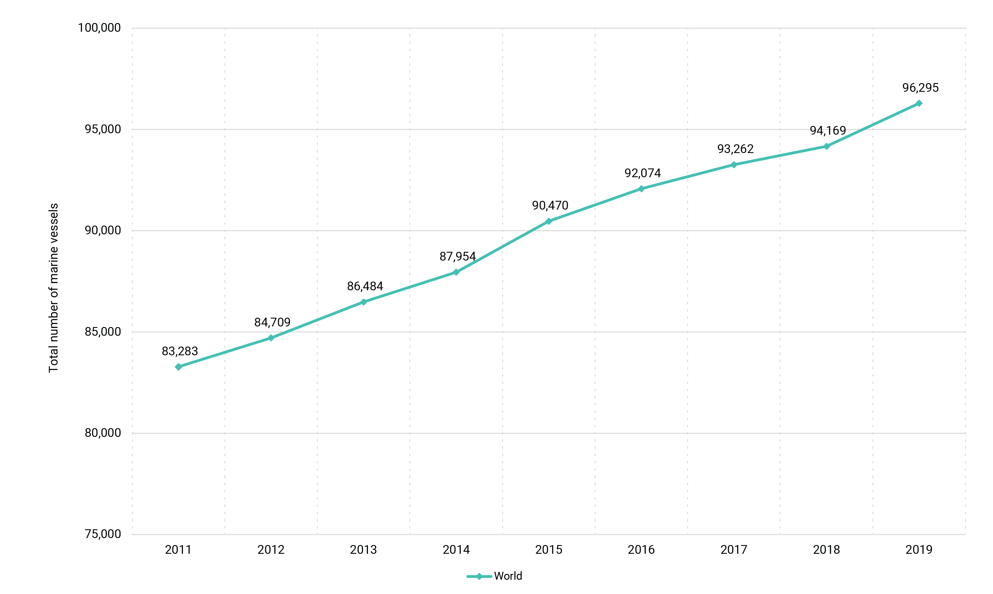 Plastics account for around 85 per cent of all marine pollution (UNEP 2021b). Annual flows of plastics to the oceans in 2016 have been estimated at around 11 million tons (MT) (range: 9-14 MT) (Lau et al. 2020; The Pew Charitable Trusts and SYSTEMIC 2020). Borrelle et al. (2017) estimated that 19 to 23 million MT, or 11 per cent, of plastic waste generated globally in 2016 entered aquatic ecosystems. Microplastics, which are pervasive in these ecosystems (Vivekanand, Mohapatra and Tyagi 2021; Mehinto et al. 2022), are present in much of the seafood intended for human consumption, although their toxic effects on marine species and on humans remain largely unknown (Danopoulos et al. 2020; Nicole 2021; Bhuyan 2022).