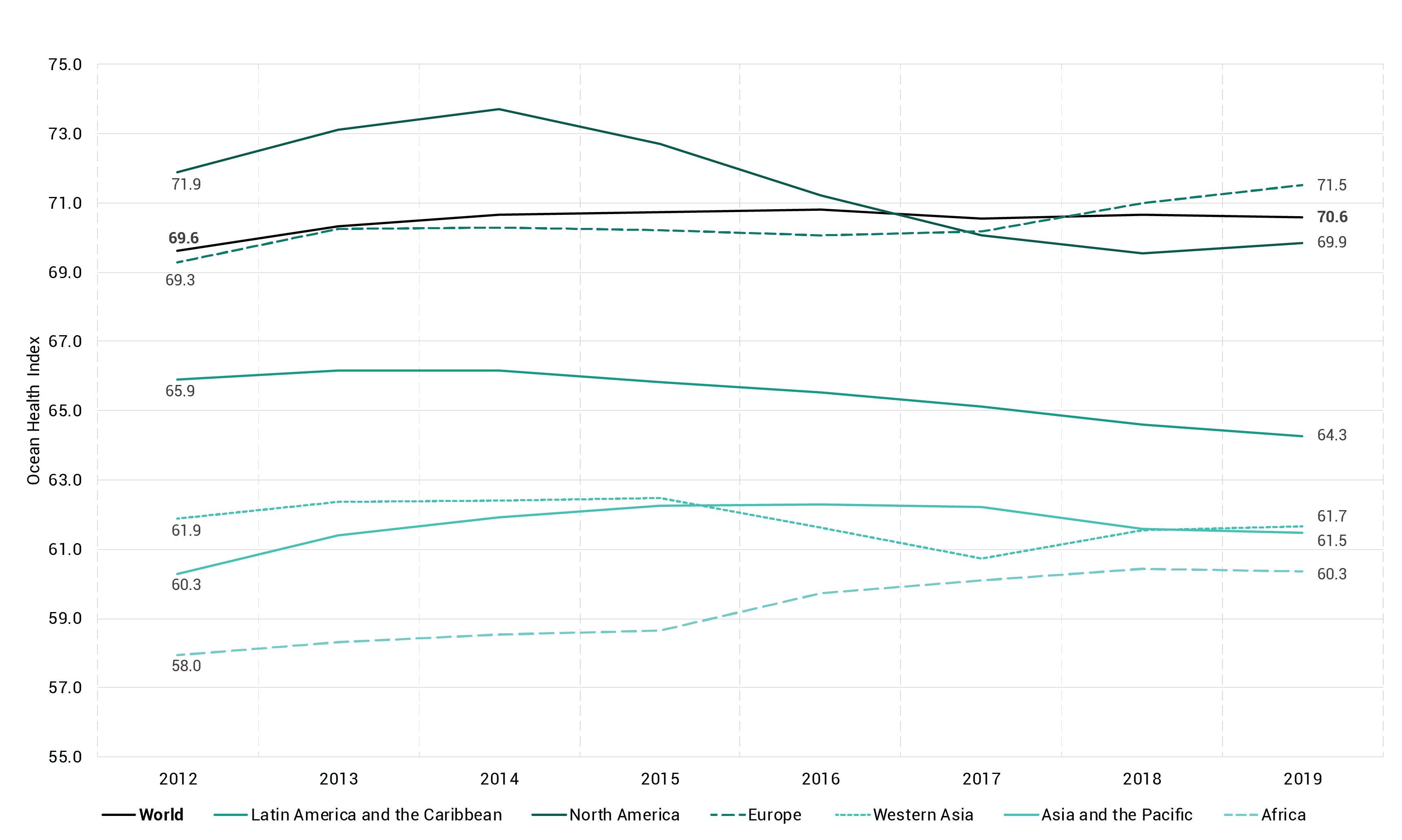 Data and analysis for this indicator for the year 2016 are presented in the freshwater indicators section of Part 2. Rates of mortality attributed to unsafe water, unsafe sanitation and lack of hygiene in that year differed significantly between regions. The highest rate was in Africa, where there were 40.1 deaths per 100,000 population, almost four times the global average of 11.7. The rates in Asia and the Pacific (8.3), West Asia (3.1) and Latin America and the Caribbean (1.1) were substantially higher than in Europe (0.3) and North America (0.2).