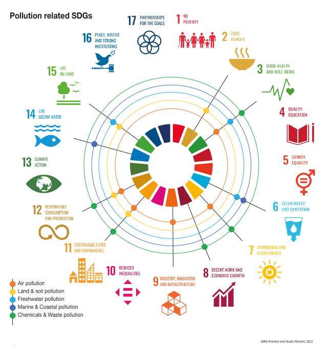 The 2030 Agenda contains 17 Sustainable Development Goals (SDGs), all of which are associated with pollution directly or indirectly. Achieving sustainable development across the 17 goals is inseparable from overcoming threats to the environment including climate change, biodiversity loss and pollution. The 2030 Agenda aims to “leave no one behind”: this is crucial in the context of pollution, because often pollution hits more strongly the poor and more vulnerable and marginalized. Given the strong association of the SDGs with pollution reduction and given the universality of this framework, relevant SDG indicators and data play a key role in measuring progress towards a pollution-free Planet.